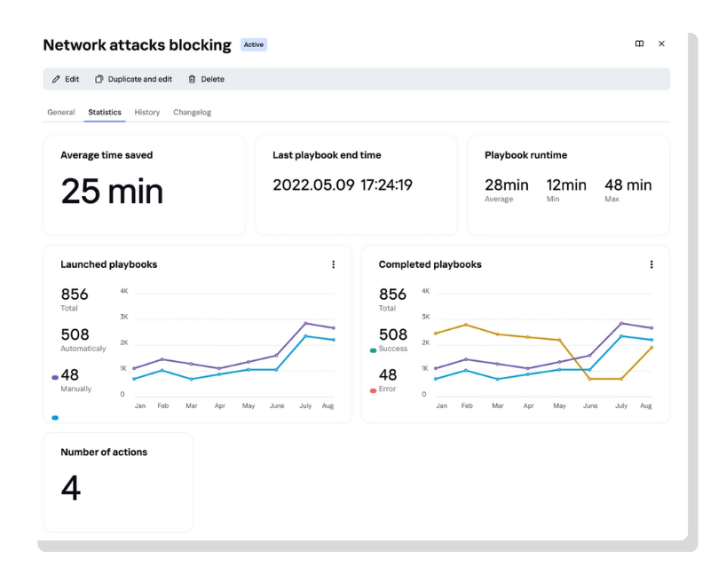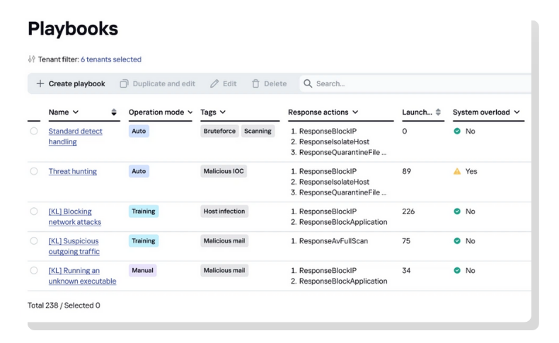 Automação e OrquestraçãoCapacite as equipes de segurança para automatizar fluxos de trabalho de resposta a incidentes, utilizando playbooks prontos para uso ou personalizados. |